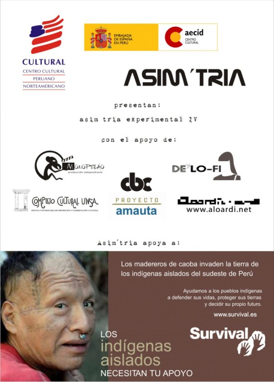 20:00 CONCIERTO: XELENQUE Fabrizio Davila - Esteban Rodriguez Cusco - Perú / http://www.myspace.com/xelenque Proyecto musical creado a partir de conceptos sonoros alternativos, dentro del amplio espectro de la música electrónica, noise o música concreta, avantgarde, drum and bass, triphop, acid jazz, psichodelic. Incluye fusión con ritmos peruanos. Para lo cual se usan instrumentos como guitarrras, sintetizadores, cajas de ritmos, sampling, moduladores analógicos, y tornamesas. La mayoria de los temas son estructuras que son sometidas a la remezcla e improvisación para los conciertos en vivo, al mas puro estilo de la música concreta. |