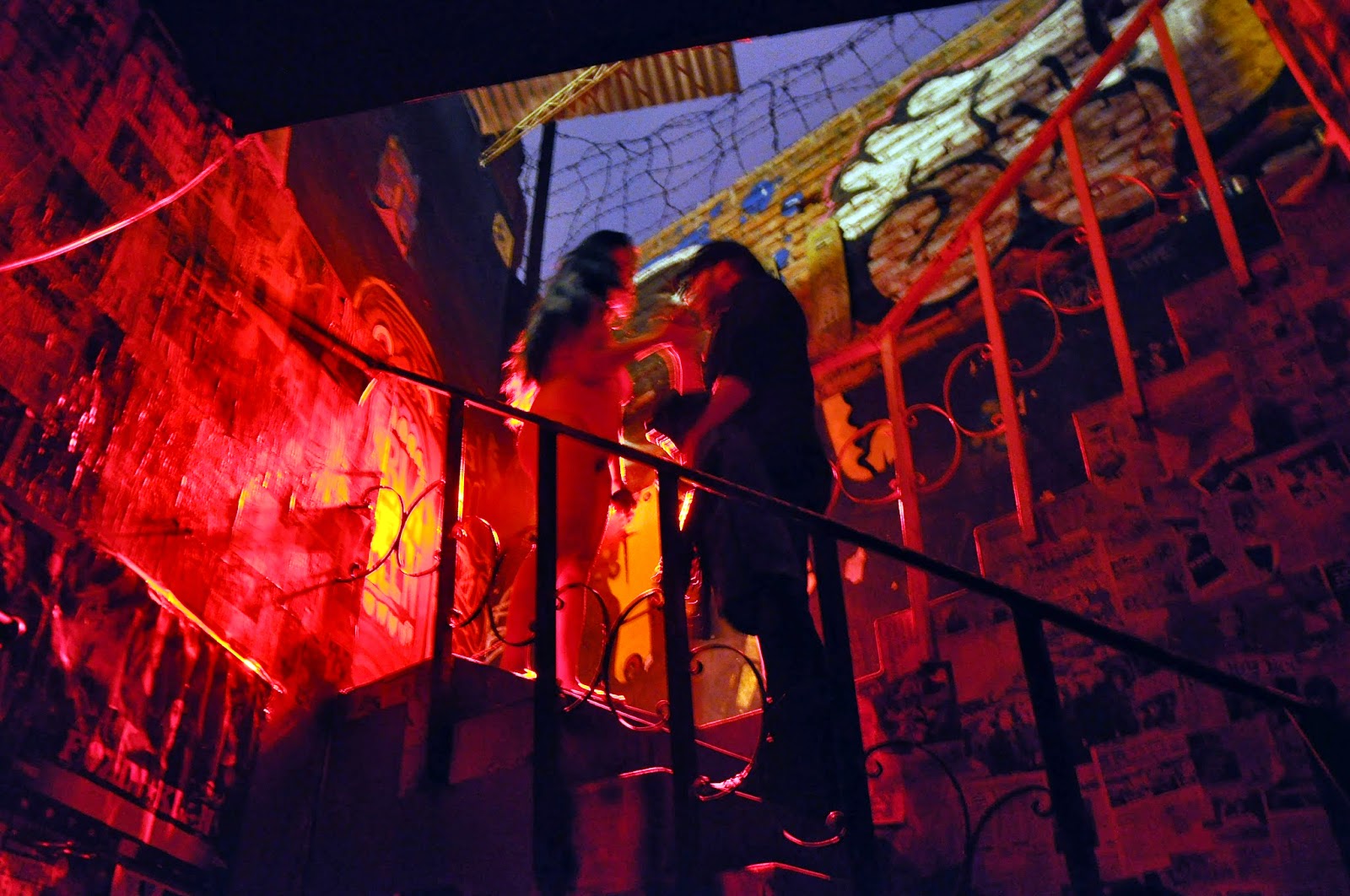 Me apropio de una escalera y coloco el cuerpo con una luz fuxia provocadora.
