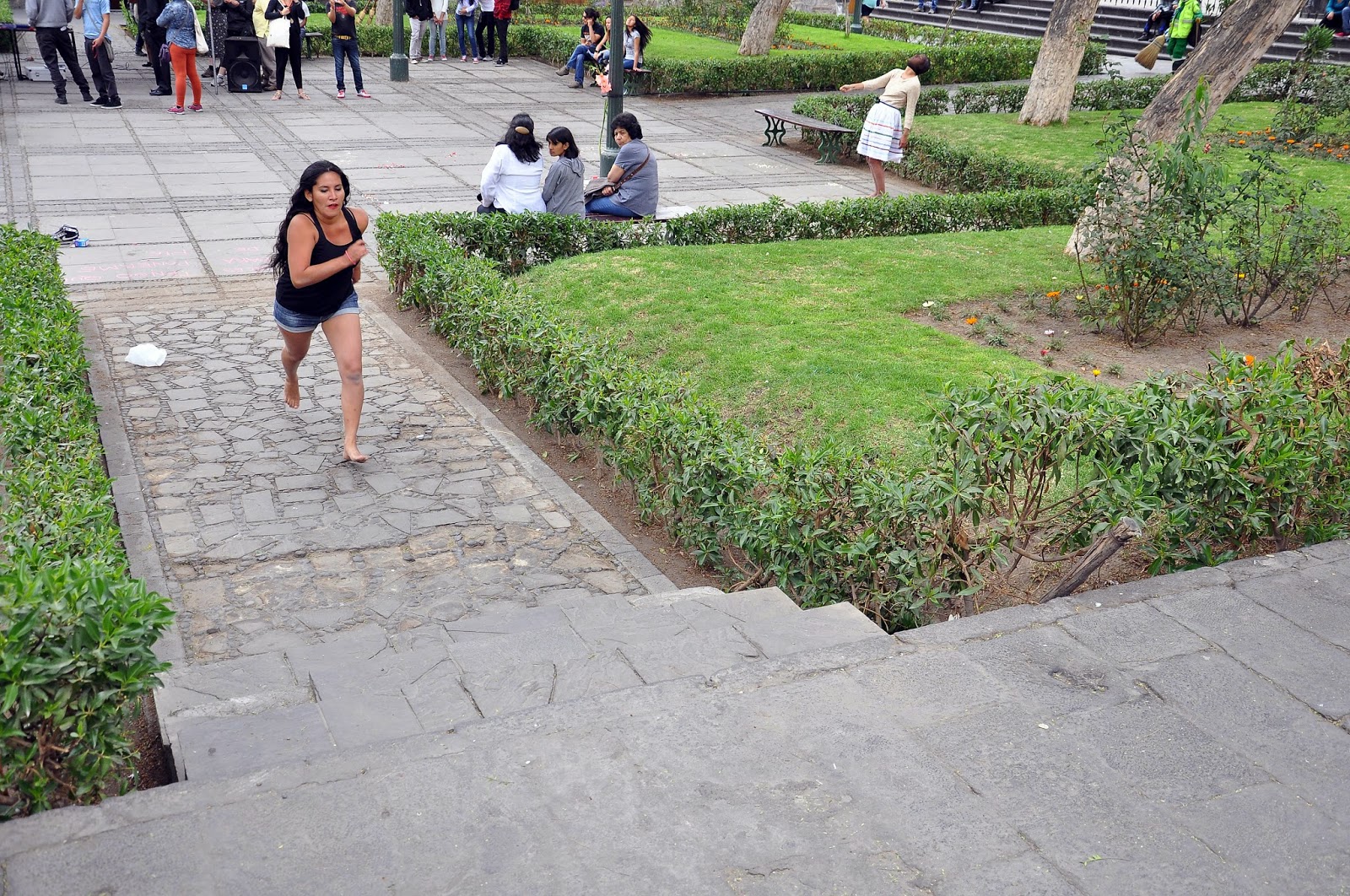 Si decido tomar la acción “sencilla” de subir y bajar para luego repetirla ilimitadamente, la acción en un momento dado pierde su forma y se descontextualiza. Se transforme. Se reinventa. Adquiera una nueva forma y poder. El cuerpo reacciona. Es llevado al límite del cansancio y la fatiga, hasta que finalmente se desvanezca.