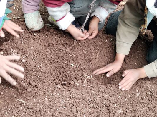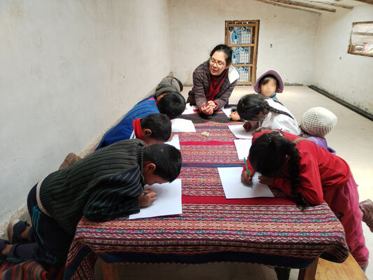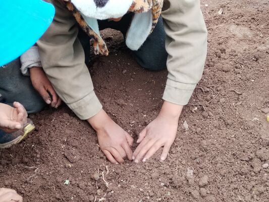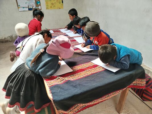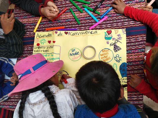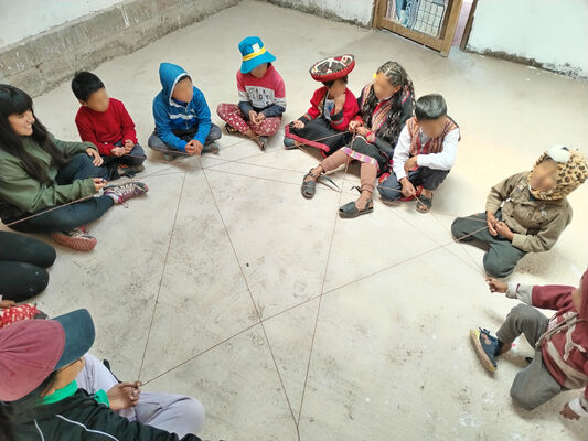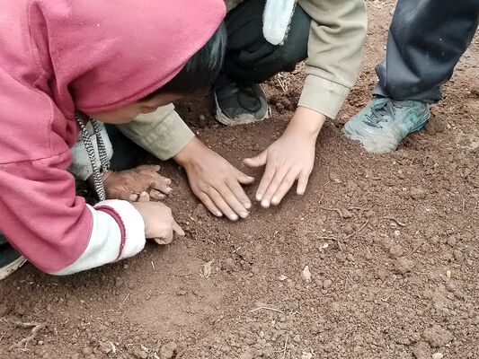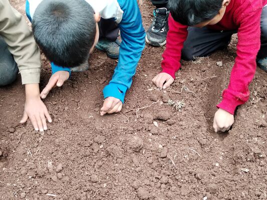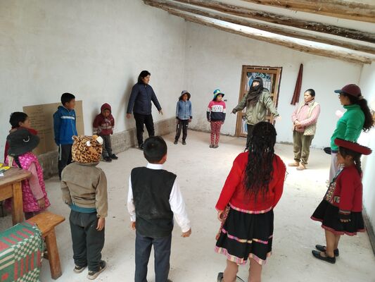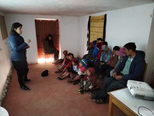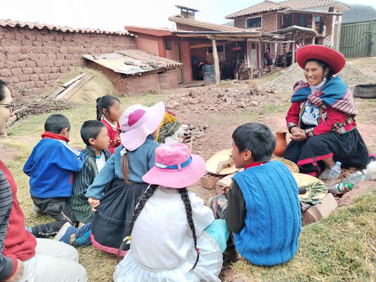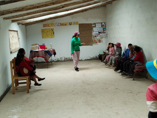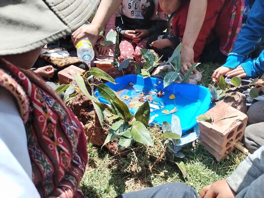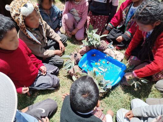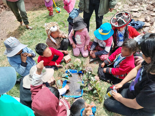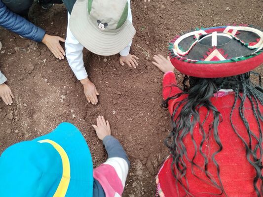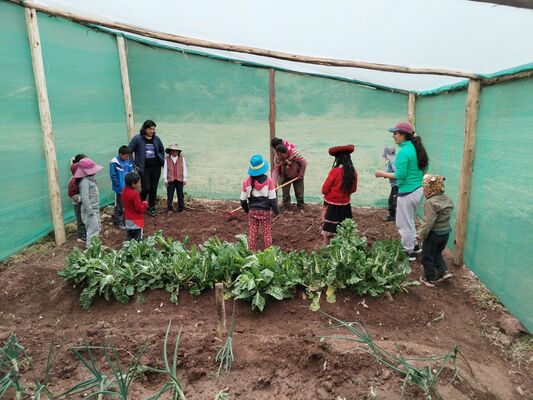 Taller de Conciencia y cuidados ambientales, saberes agricolas y seguridad alimentaria, realizado en la I.E. Técnico Agropecuario Bilingüe de la comunidad de Patacancha del distrito de Ollantaytambo, Urubamba, Cusco, en el contexto del programa Barrio Seguro con Cultura.