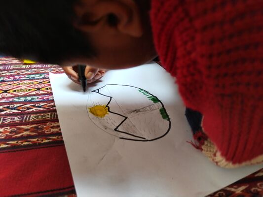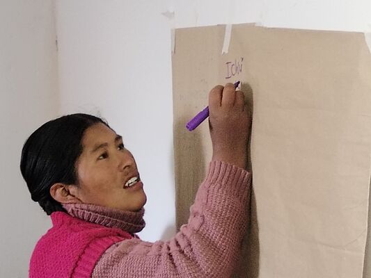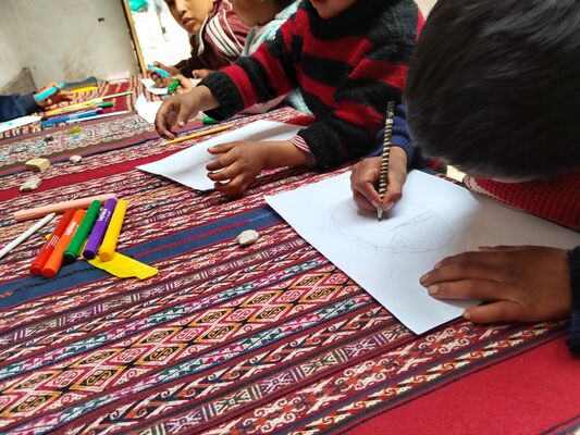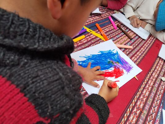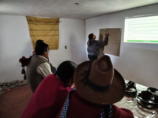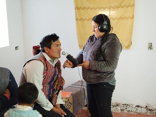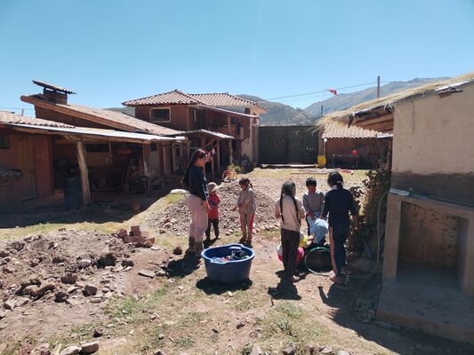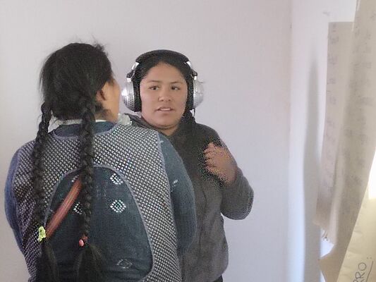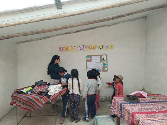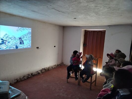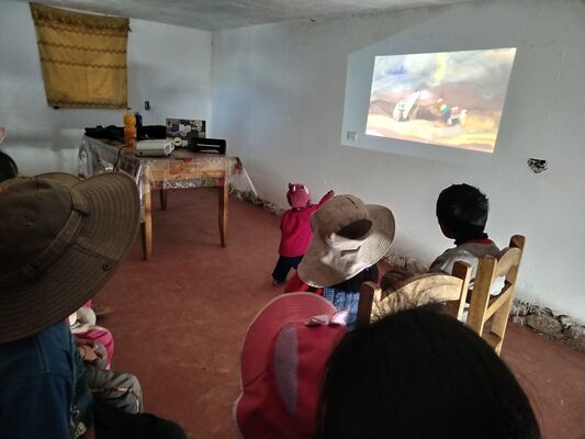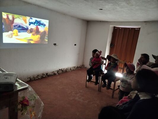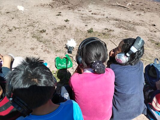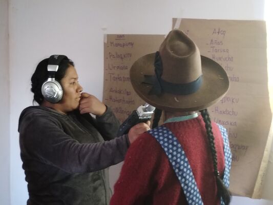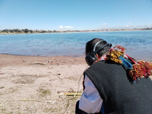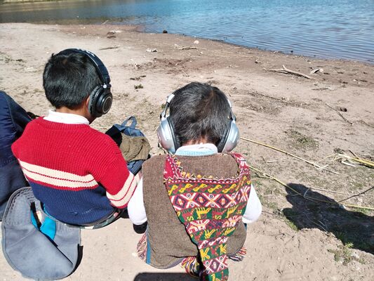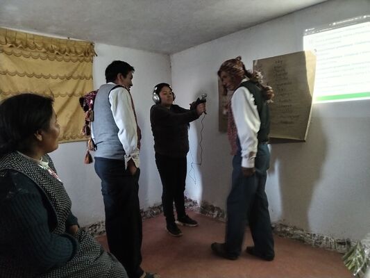 Actividad de escucha y registro sonoro realizada en la Biblioteca Sisi Wasichankuna en la comunidad de Ocutuán, distrito de Chinchero, Urubamba, Cusco, en el contexto del Piloto de registro sonoro en lengua Quechua para Wikimedia Commons, desarrollado en colaboración con Wikiacción.