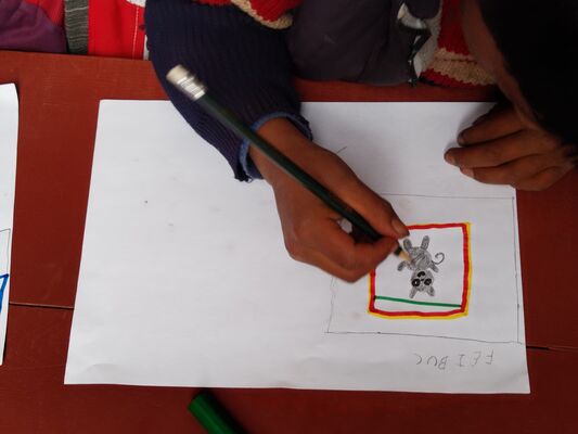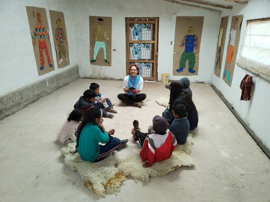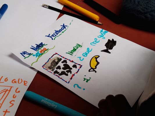 Taller de Seguridad digital, programación binaria con sonido e imaginar nuevas redes sociales, realizado en la Biblioteca Sisi Wasichankuna en la comunidad de Ocutuán, distrito de Chinchero, Urubamba, Cusco, en el contexto del programa Barrio Seguro con Cultura.