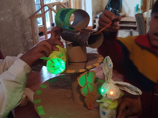 Taller de construcción de animales de luz, realizado en La Terrazita en Arequipa, en el contexto del Festival Sprunkos.